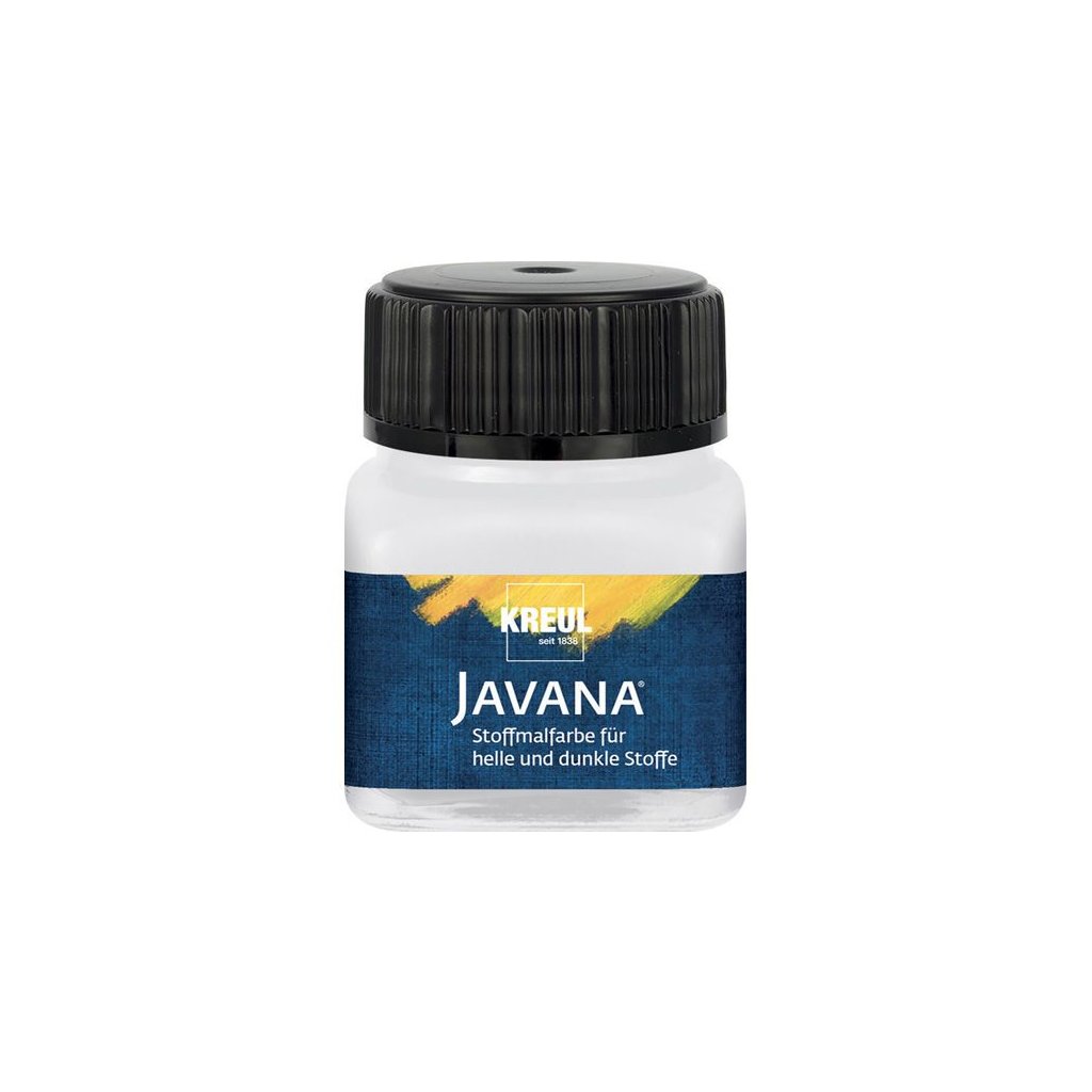 Barva na světlý a tmavý textil JAVANA bílá 20ml: lehce tekoucí konzistence, jemná a zvláště živá na světlých tričkách, mikinách, taškách nebo ubrusech, hladké zářivé barvy tkaniny s krémovým charakterem, velmi snadné malování, barva na vodní bázi proniká hluboko do vláken, pro světlé tkaniny z bavlny, viskózy a směsí až o 20% obsah syntetických vláken, vhodná pro tisk nebo ruční malbu, po zafixování odolné proti vyblednutí i vyprání (až do teploty 40°C).