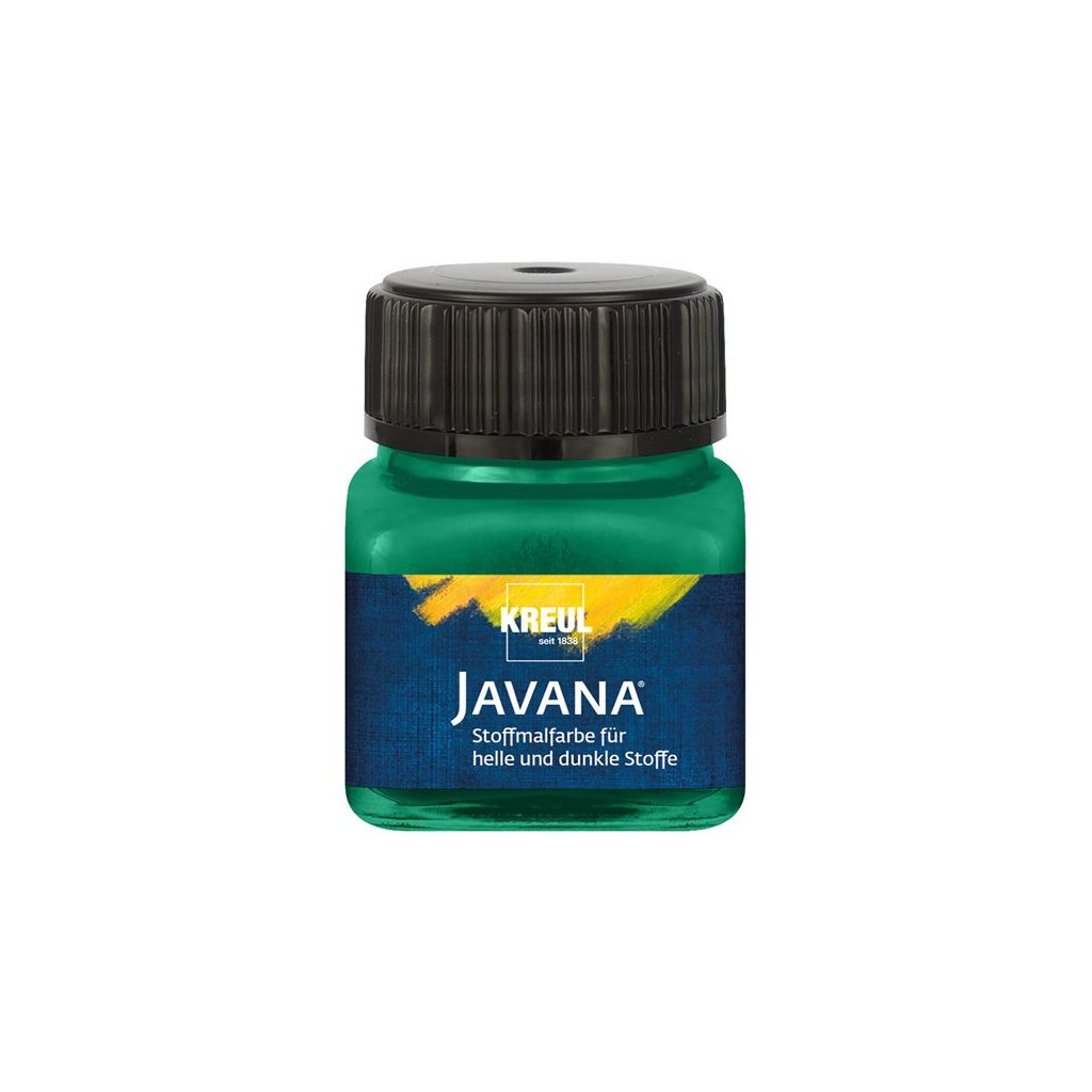 Barva na světlý a tmavý textil JAVANA tmavě zelená 20ml: lehce tekoucí konzistence, jemná a zvláště živá na světlých tričkách, mikinách, taškách nebo ubrusech, hladké zářivé barvy tkaniny s krémovým charakterem, velmi snadné malování, barva na vodní bázi proniká hluboko do vláken, pro světlé tkaniny z bavlny, viskózy a směsí až o 20% obsah syntetických vláken, vhodná pro tisk nebo ruční malbu, po zafixování odolné proti vyblednutí i vyprání (až do teploty 40°C).