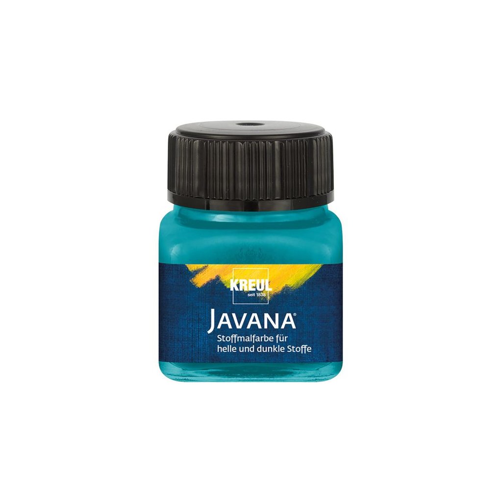 Barva na světlý a tmavý textil JAVANA tyrkysová 20ml: lehce tekoucí konzistence, jemná a zvláště živá na světlých tričkách, mikinách, taškách nebo ubrusech, hladké zářivé barvy tkaniny s krémovým charakterem, velmi snadné malování, barva na vodní bázi proniká hluboko do vláken, pro světlé tkaniny z bavlny, viskózy a směsí až o 20% obsah syntetických vláken, vhodná pro tisk nebo ruční malbu, po zafixování odolné proti vyblednutí i vyprání (až do teploty 40°C).