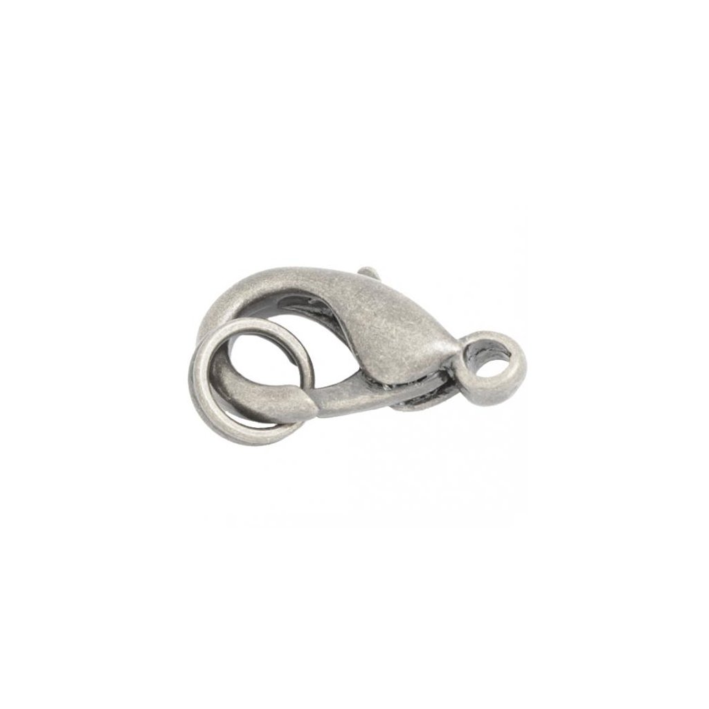 Bižuterní karabinka o rozměru 10mm (bez očka) a galvanické pvrchové úpravě staré stříbro. Karabinka slouží především k uzavírání vašich šperků. Balení obsahuje karabinku včetně protidílu (dvoukroužek).