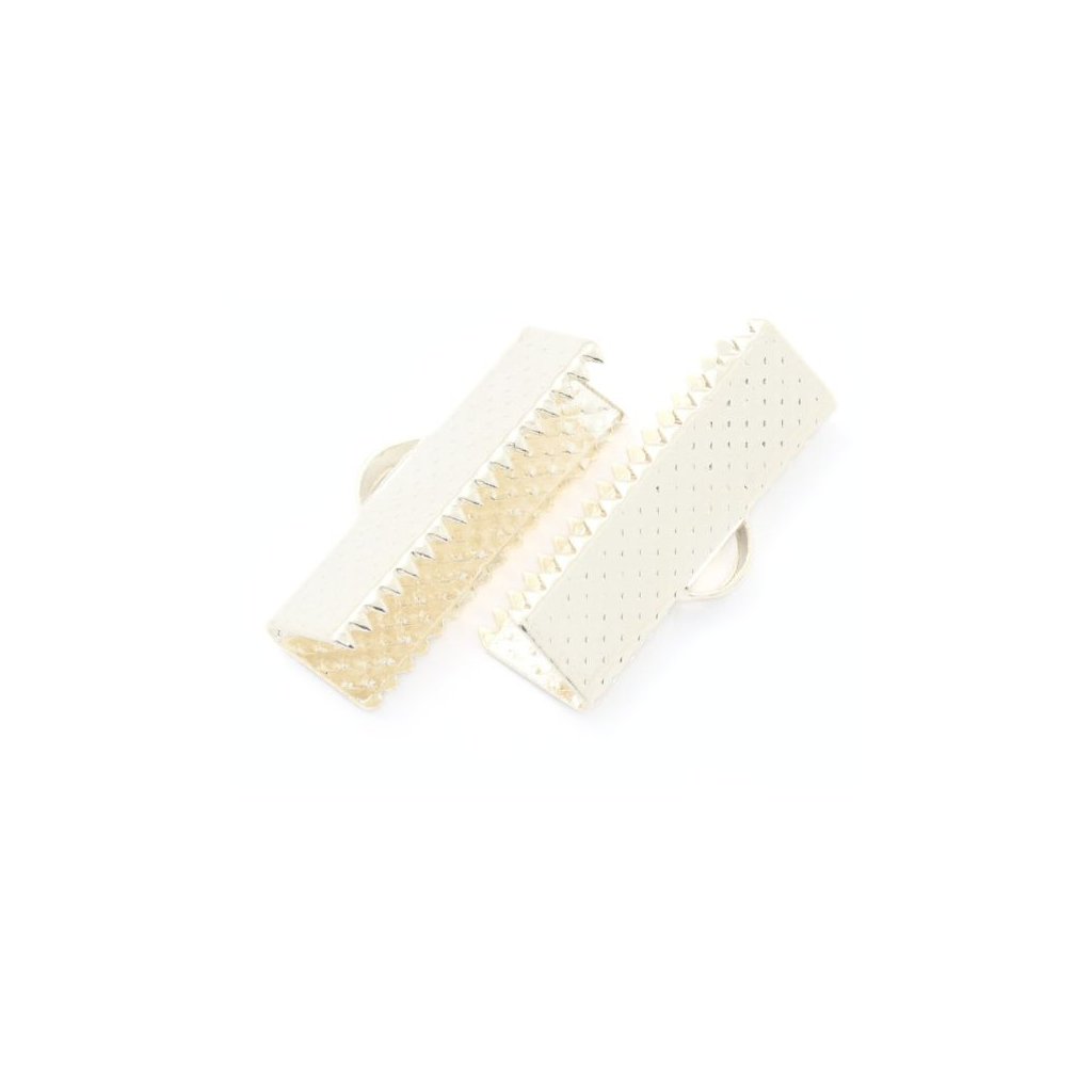 Zamačkavací koncovka na stuhu či šité šperky. Koncovka má rozměr 20/8mm a stříbrnou povrchovou úpravu. Koncovku stačí zamačkanou na stuhu či šperk a přidat karabinku či jinou bižuterní záponku pomoci spojovacího kroužku.