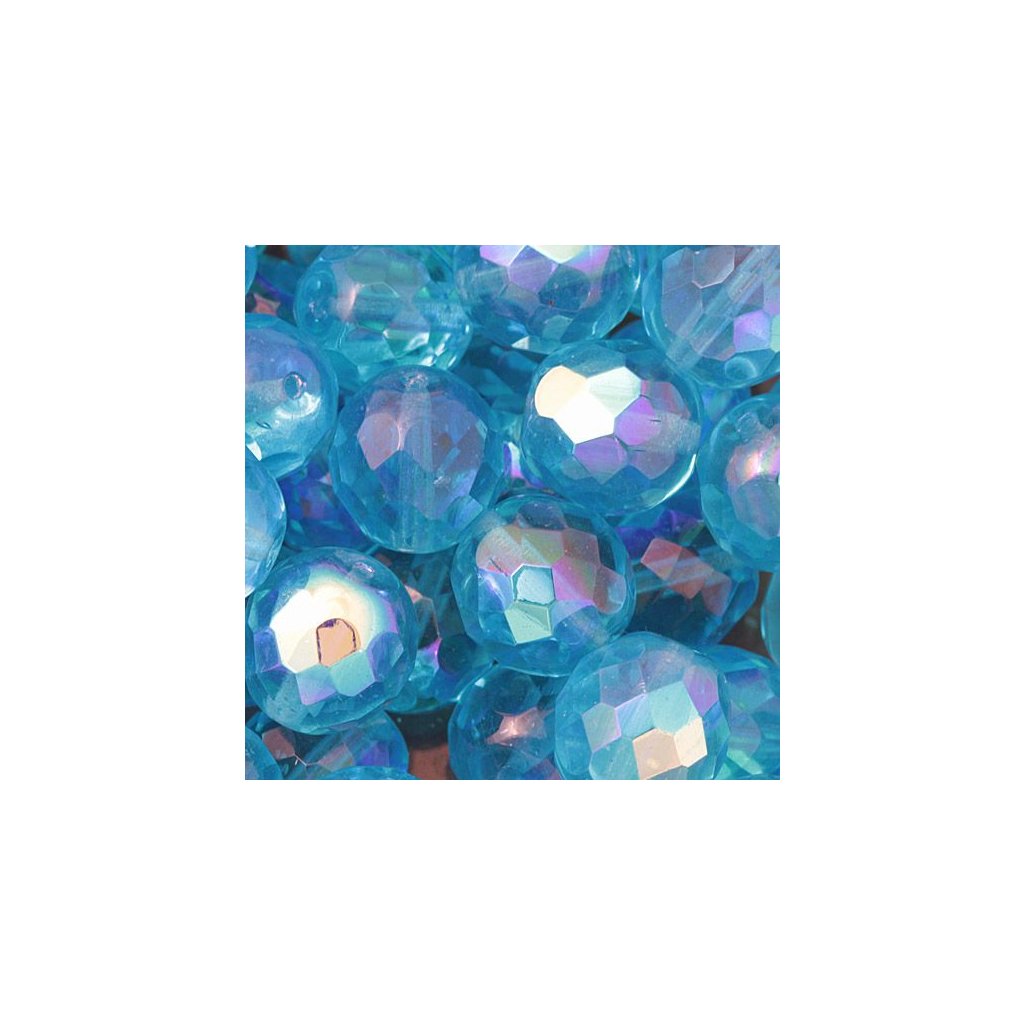 Broušený korálek ve tvaru kuličky v barevném provedení modrá s úpravou AB o rozměru 12mm. Korálek je vhodný na všechny techniky navlékaní. Balení obsahuje 8ks.