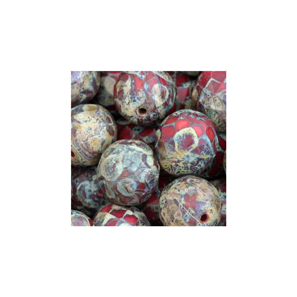 Broušený korálek ve tvaru kuličky v barevném provedení červená s úpravou travertin o rozměru 14mm. Korálek je vhodný na všechny techniky navlékaní, vyšívání, šití a háčkování. Uvedená cena za 6ks.