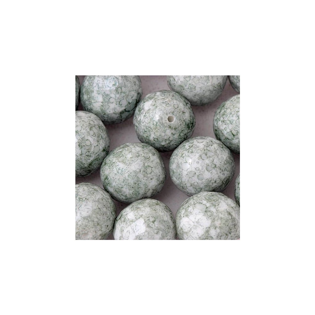 Broušený korálek ve tvaru kuličky v barevném provedení zelená s úpravou listr o rozměru 14mm. Korálek je vhodný na všechny techniky navlékaní. Balení obsahuje 6ks.