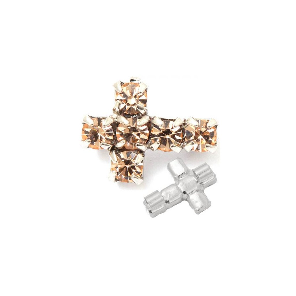 Štrasový korálek ve tvaru křížku o rozměru 10/7mm. Křížek má barvu kamenů light peach a povrchovou úpravu rhodium. Křížek má na zadní straně dvě průvlekové trubičky, aby se korálek netočil a krásně držel. Tento křížek se především hodí na náramky jako mezidílek mezi korálky.