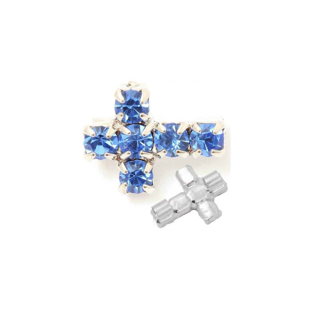 Štrasový korálek ve tvaru křížku o rozměru 10/7mm. Křížek má barvu kamenů sapphire a povrchovou úpravu rhodium. Křížek má na zadní straně dvě průvlekové trubičky, aby se korálek netočil a krásně držel. Tento křížek se především hodí na náramky jako mezidílek mezi korálky.