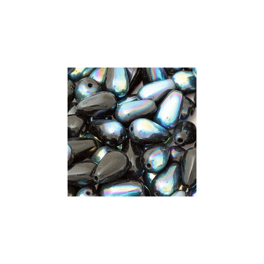 Korálek ve tvaru kapky v barevném provedení černá s úpravou AB o rozměru 9/6mm. Balení obsahuje jeden kus.