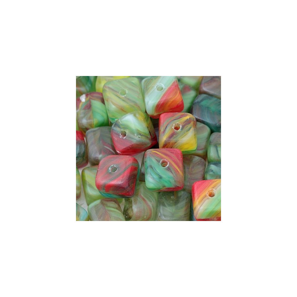 Korálek ve tvaru kostičky v barevném provedení zelená žíhaná o rozměru 5mm. Korálek je vhodný na všechny techniky navlékání, šití a háčkování. Balení obsahuje jeden kus.