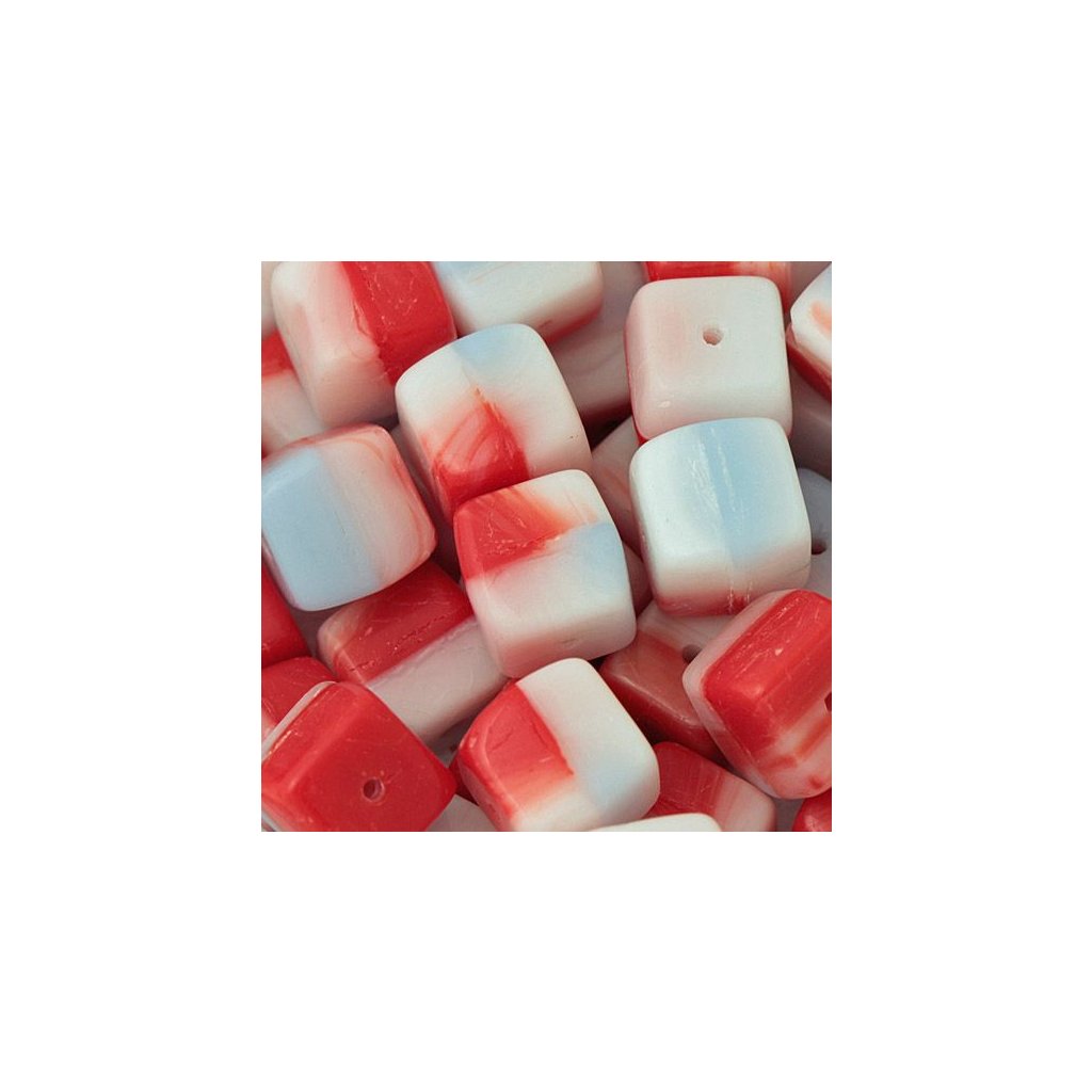 Korálek ve tvaru kostičky v barevném provedení červenobílá o rozměru 6mm. Korálek je vhodný na všechny techniky navlékání, šití a háčkování. Balení obsahuje jeden kus.
