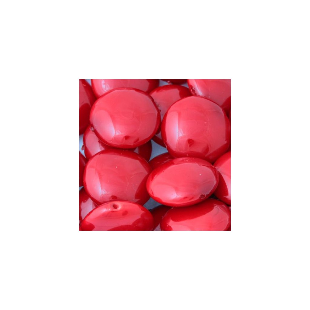 Korálek ve tvaru lentilky v barevném provedení červená o rozměru 14mm. Balení obsahuje jeden kus.