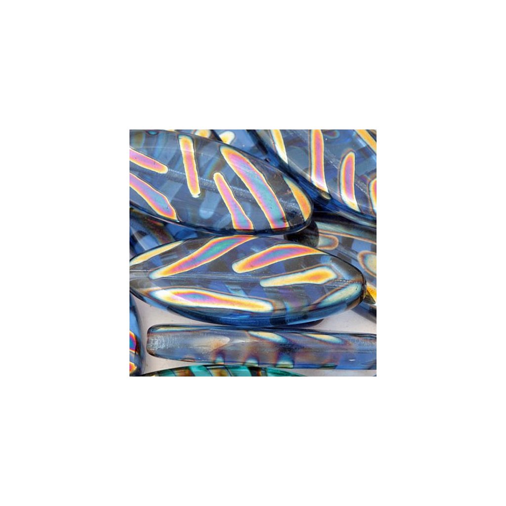 Korálek mačkaný LODIČKA 30mm modrá AB pruhy