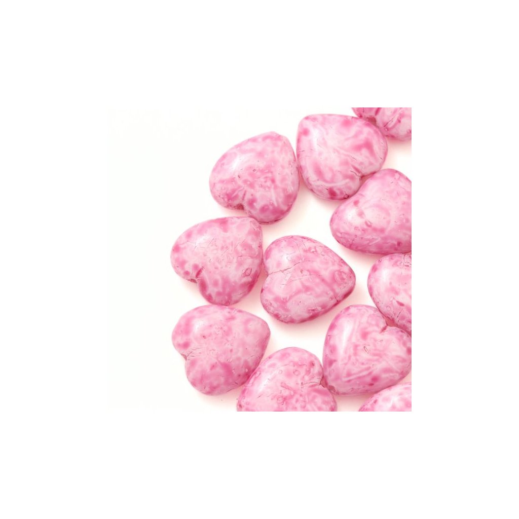 Mačkaný tvarový korálek ve tvaru srdíčka o rozměru 16/15mm a barevném provedení mramor fuchsia. Korálek je vhodný na všechny techninky navlékaní a šití korálků.