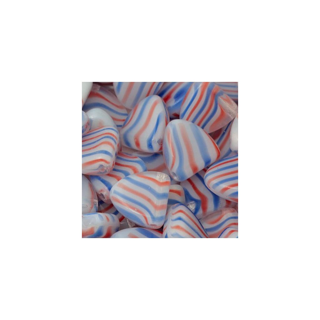 Korálek ve tvaru trojúhelníku v barevném provedení bílá žíhaná o rozměru 9mm. Korálek je vhodný na všechny techniky navlékání. Balení obsahuje jeden kus.