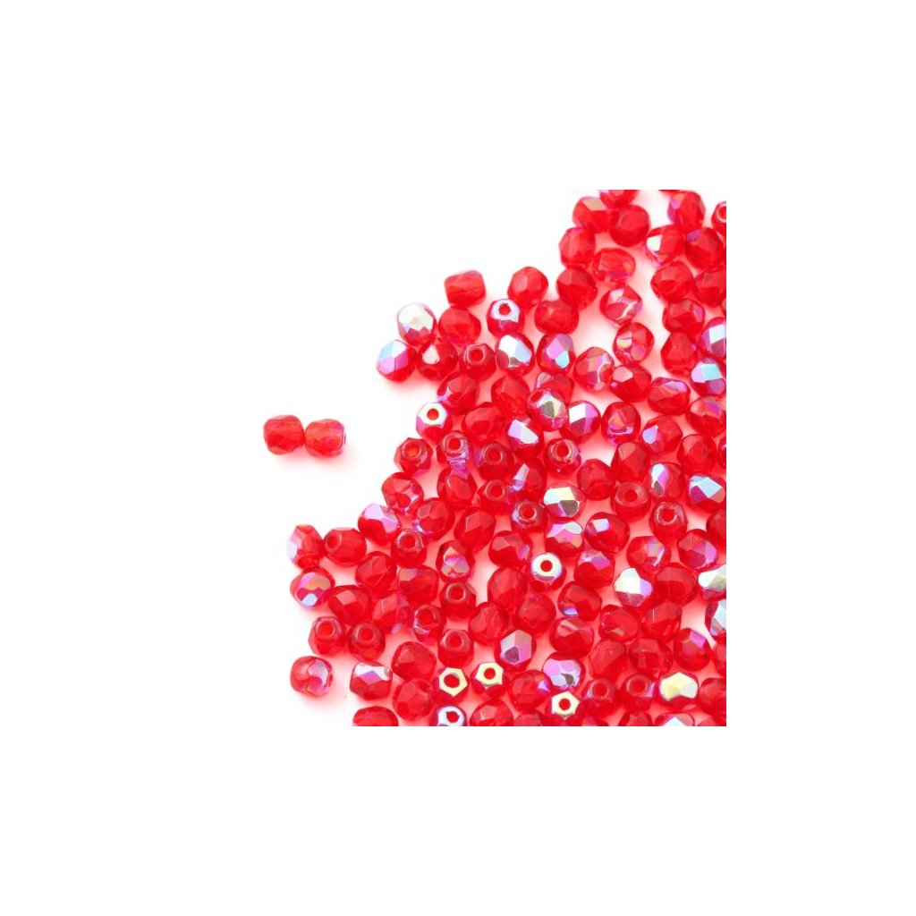 Broušený korálek ve tvaru kuličky v barevném provedení light siam AB o rozměru 3mm. Korálek je vhodný na všechny techniky navlékaní, vyšívání, šití a háčkování. Tradiční české broušené kulaté perle (ohňové perle nebo ohňovky), jsou vyráběny broušením na strojích a následným vypálením v peci pro získání vysokého lesku.