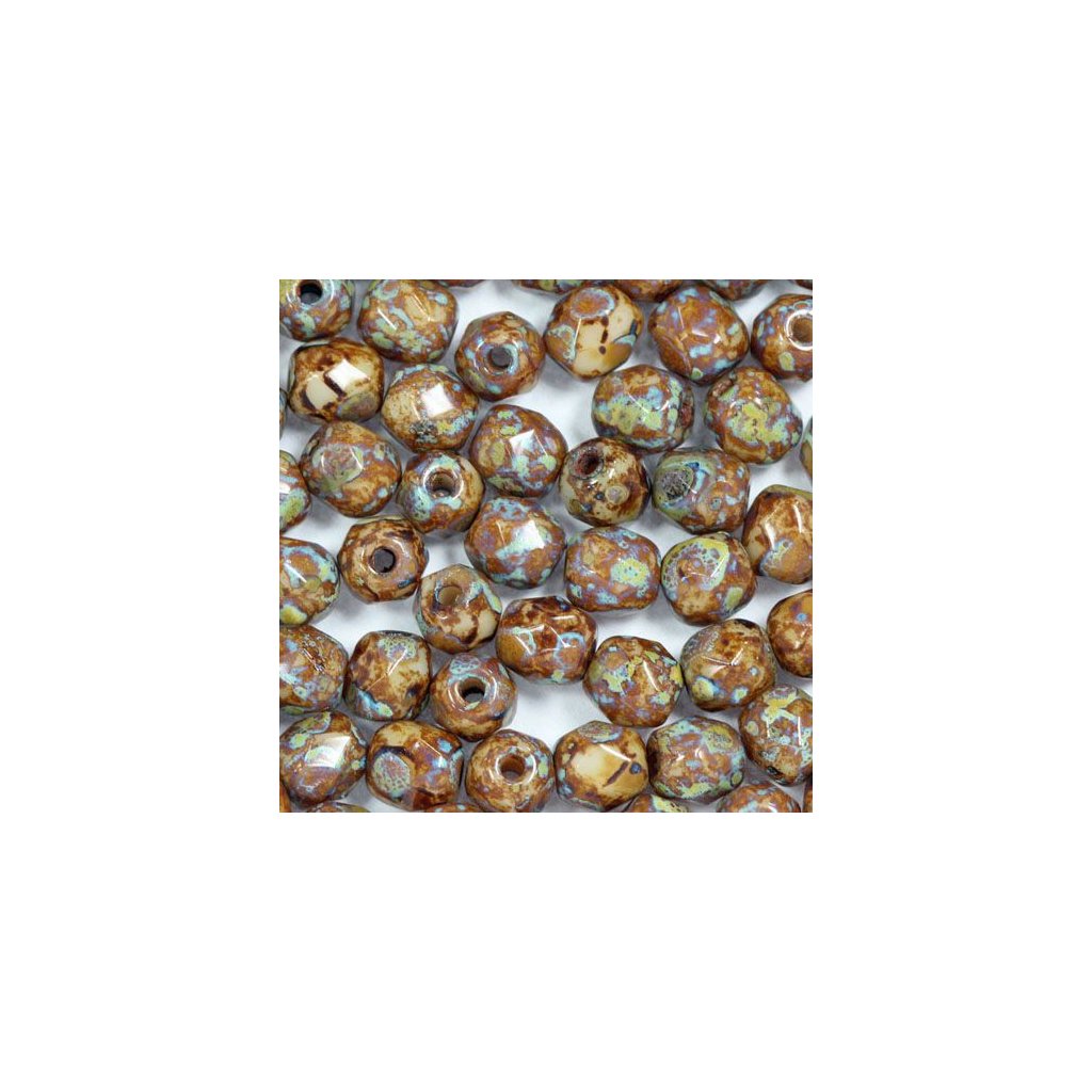 Broušený korálek ve tvaru kuličky v barevném provedení modrá s úpravou travertin o rozměru 4mm. Korálek je vhodný na všechny techniky navlékaní, vyšívání, šití a háčkování. Balení obsahuje 50ks.