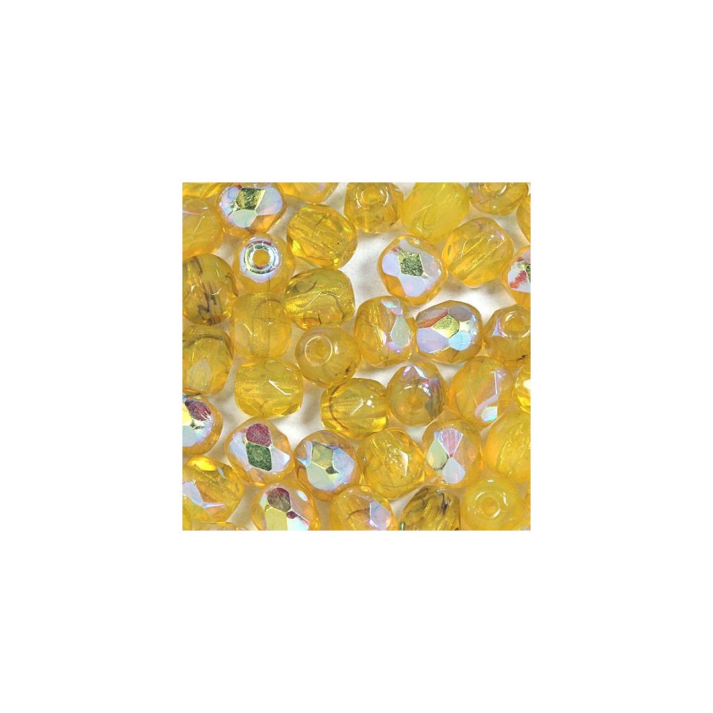 Broušený korálek ve tvaru kuličky v barevném provedení žlutá s úpravou AB o rozměru 5mm. Korálek je vhodný na všechny techniky navlékaní, vyšívání, šití a háčkování. Balení obsahuje 50ks.