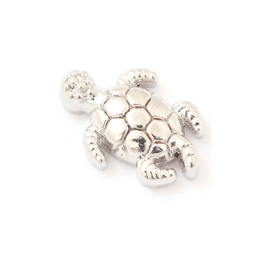 Kovový korálek ve tvaru želvy o rozměru 13/9mm a povrchové úpravě rhodium. Přívěsek můžete jednoduše zavěsit na náramek, řetízek, náušnice či jiný šperk.