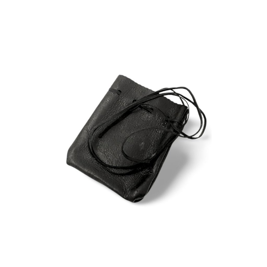 Kožený měšec o rozměru 6/8cm v barevném provedení černá. Měšec je včetně utahovací kůže na krk. Může sloužit na mince, klíče či jako dárkové balení vašeho šperku.
