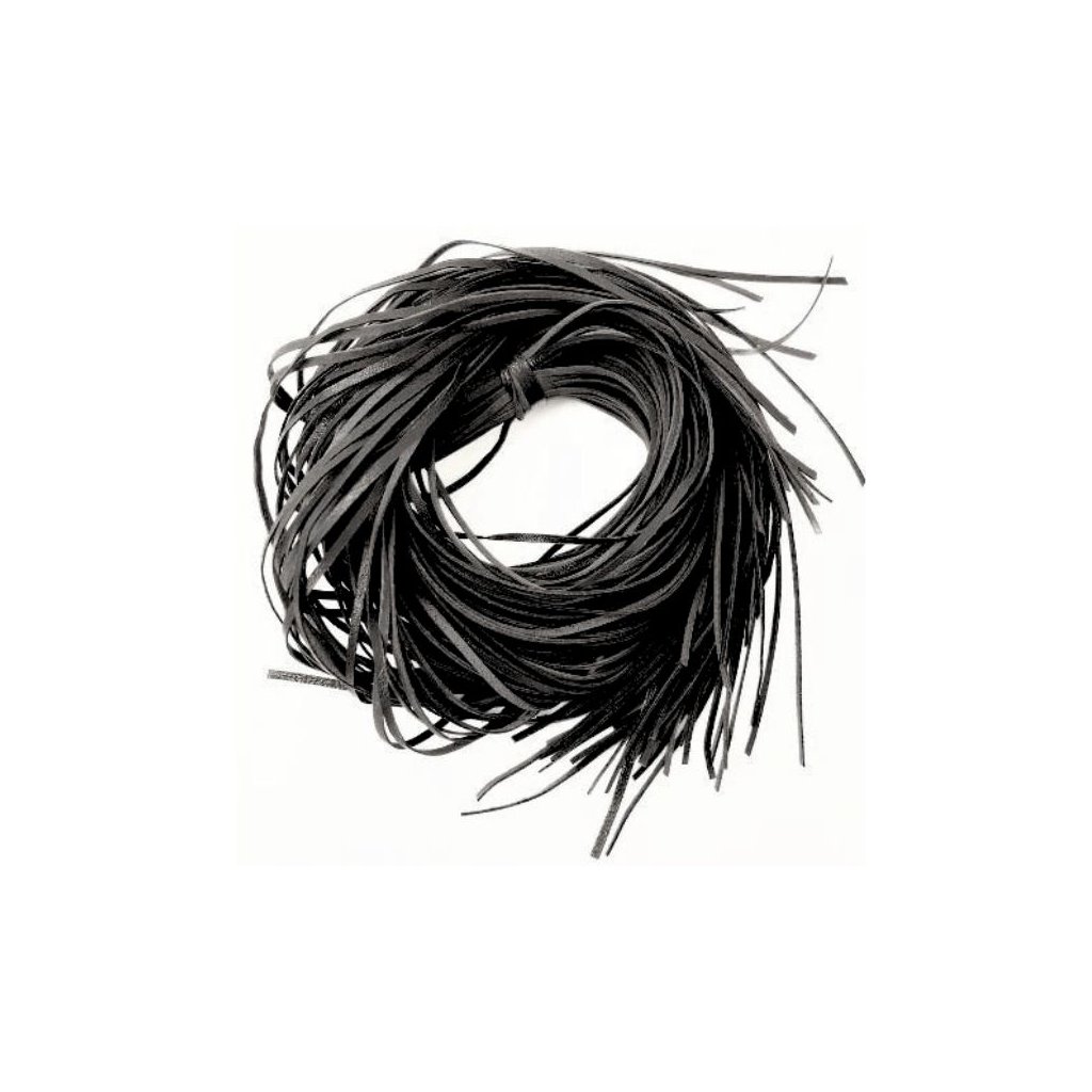 Plochá kůže o rozměru cca 2x1,5mm a barevném provedení černá. Řemínek má délku 60cm a lze zněj udělat náramek či náhrdelník pro přívěsek.
