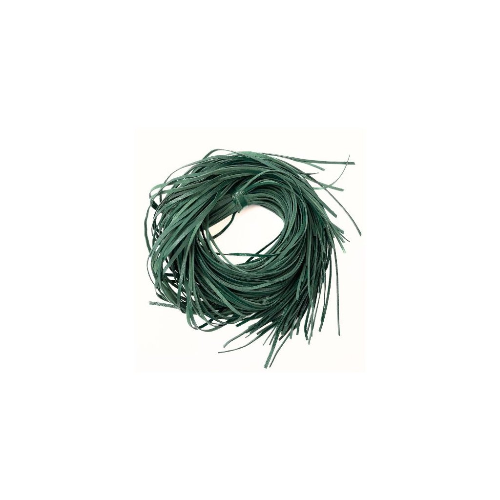 Plochá kůže o rozměru cca 2x1,5mm a barevném provedení tmavě zelená. Řemínek má délku 90cm a lze zněj udělat náramek či náhrdelník pro přívěsek.