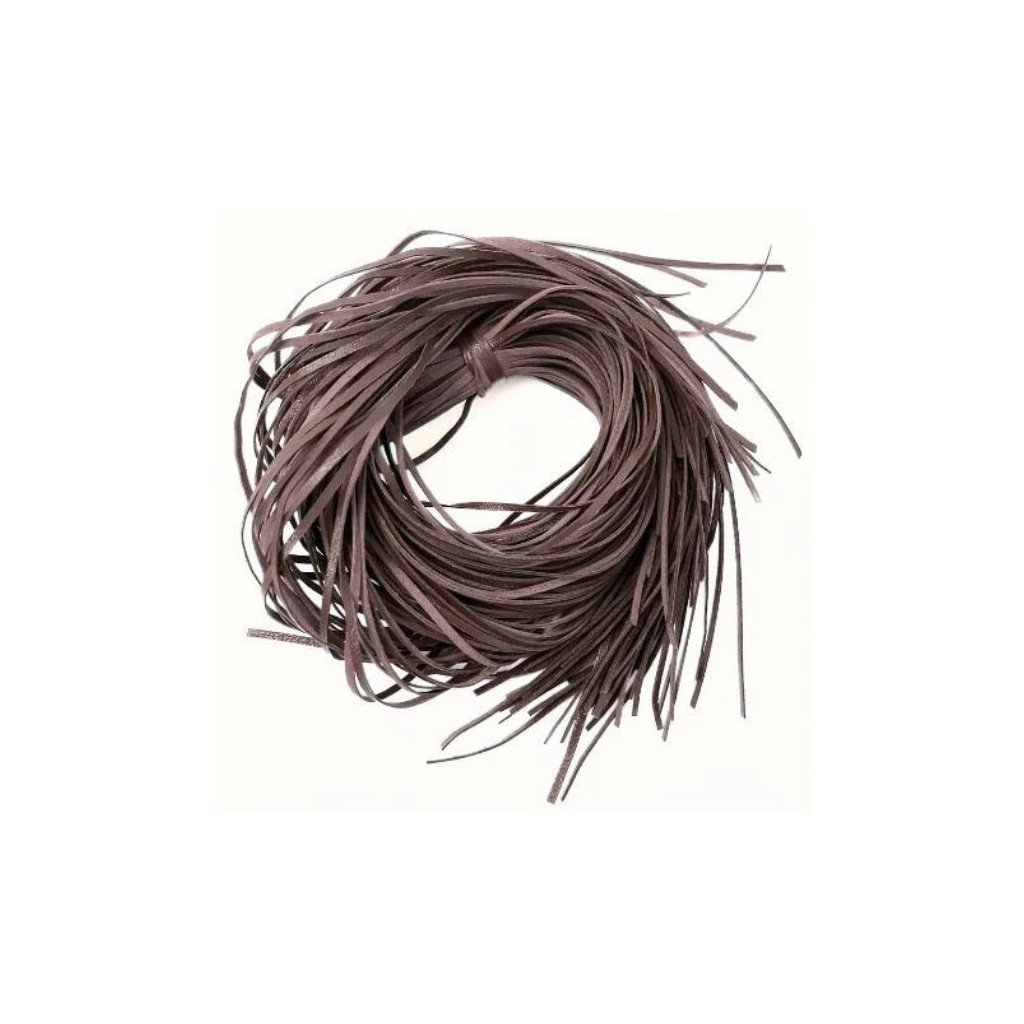 Plochá kůže o rozměru cca 4x1,5mm a barevném provedení hnědá. Řemínek má délku 110cm a lze zněj udělat náramek či náhrdelník pro přívěsek.