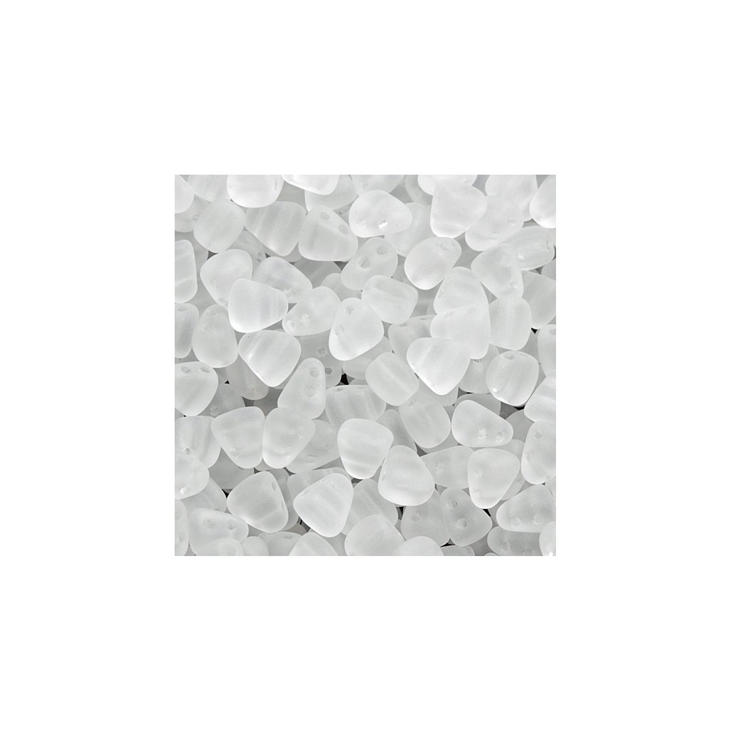 Mačkaný dvoudírkový korálek MATUBO NIB-BIT v barevném provedení krystal mat o rozměru 6x5mm. Korálek se výrábí speciální technologií povrchové úpravy a dosahuje vysokého stupně čistoty jednotlivých dírek. Korálek ve tvaru zkoseného trojúhelníku, je jako stovřený pro tvoření okrohlých tvarů a lemování.