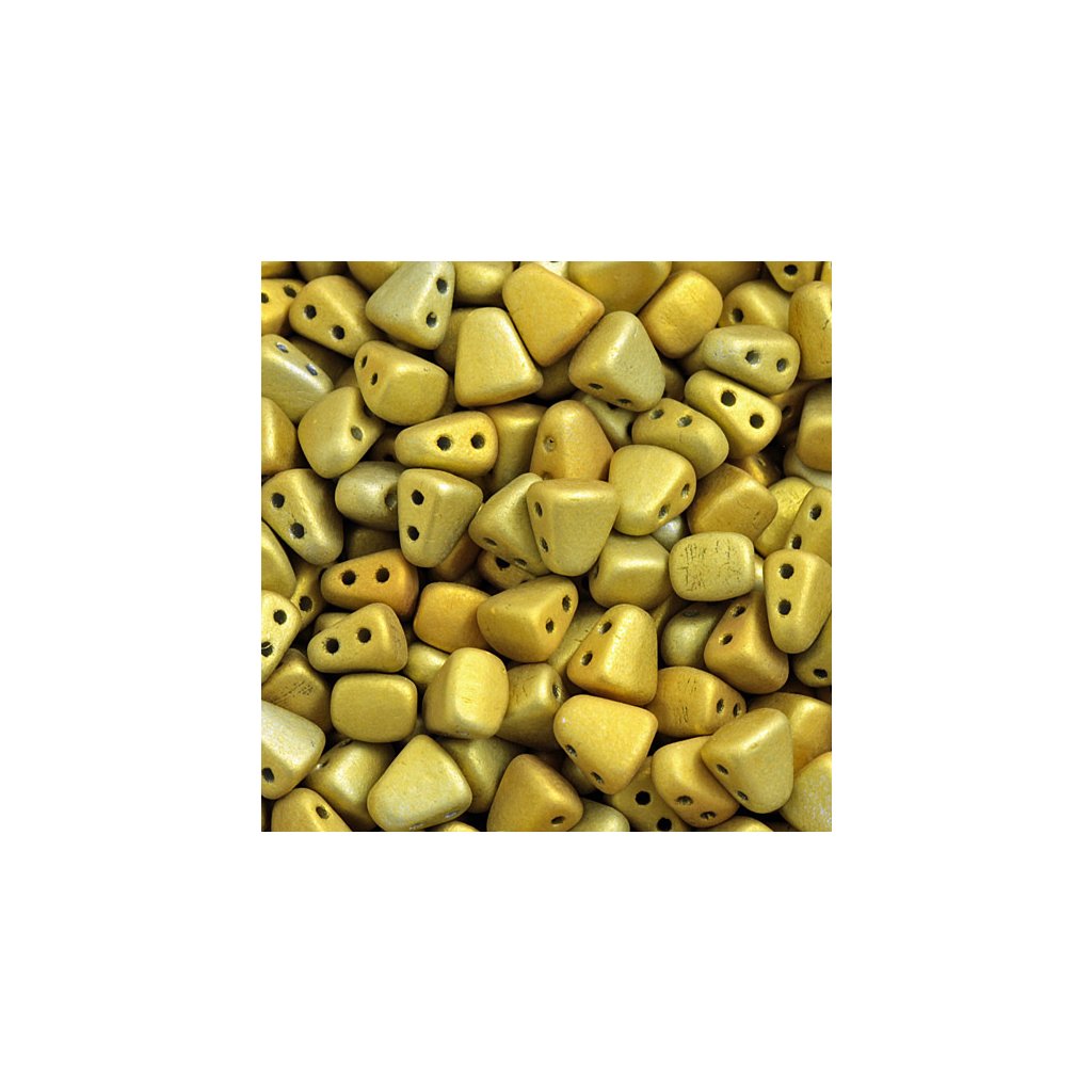 Mačkaný dvoudírkový korálek MATUBO NIB-BIT v barevném provedení metalust yellow gold matte o rozměru 6x5mm. Korálek se výrábí speciální technologií povrchové úpravy a dosahuje vysokého stupně čistoty jednotlivých dírek. Korálek ve tvaru zkoseného trojúhelníku, je jako stovřený pro tvoření okrohlých tvarů a lemování.