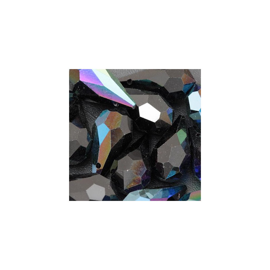 Strojově broušená perle ve tvaru dropsu o rozměru 18/9mm v barevném provedení černá s úpravou AB. Balení obsahuje jeden kus.