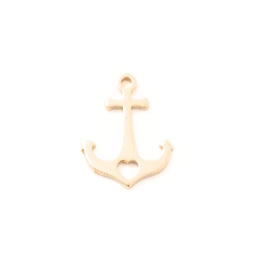 Mezidíl a přívěsek v jednom. Přívěsek ve tvaru kotvy se srdíčkem o rozměru 15/11mm z chirurgické oceli včetně povrchové úpravy rose gold. Můžete použít jako přívěsek i mezidíl na náramek.