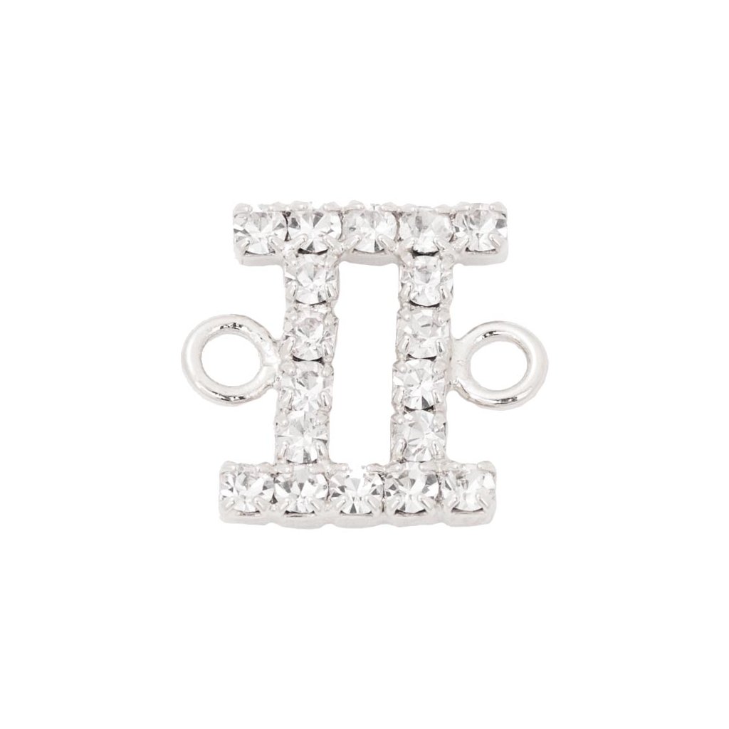 Mezidíl na náramek znamení zvěrokruhu Blíženci o rozměru 16/10mm v povrchové úpravě rhodium. V přívěsku jsou usazeny krystaly Preciosa.