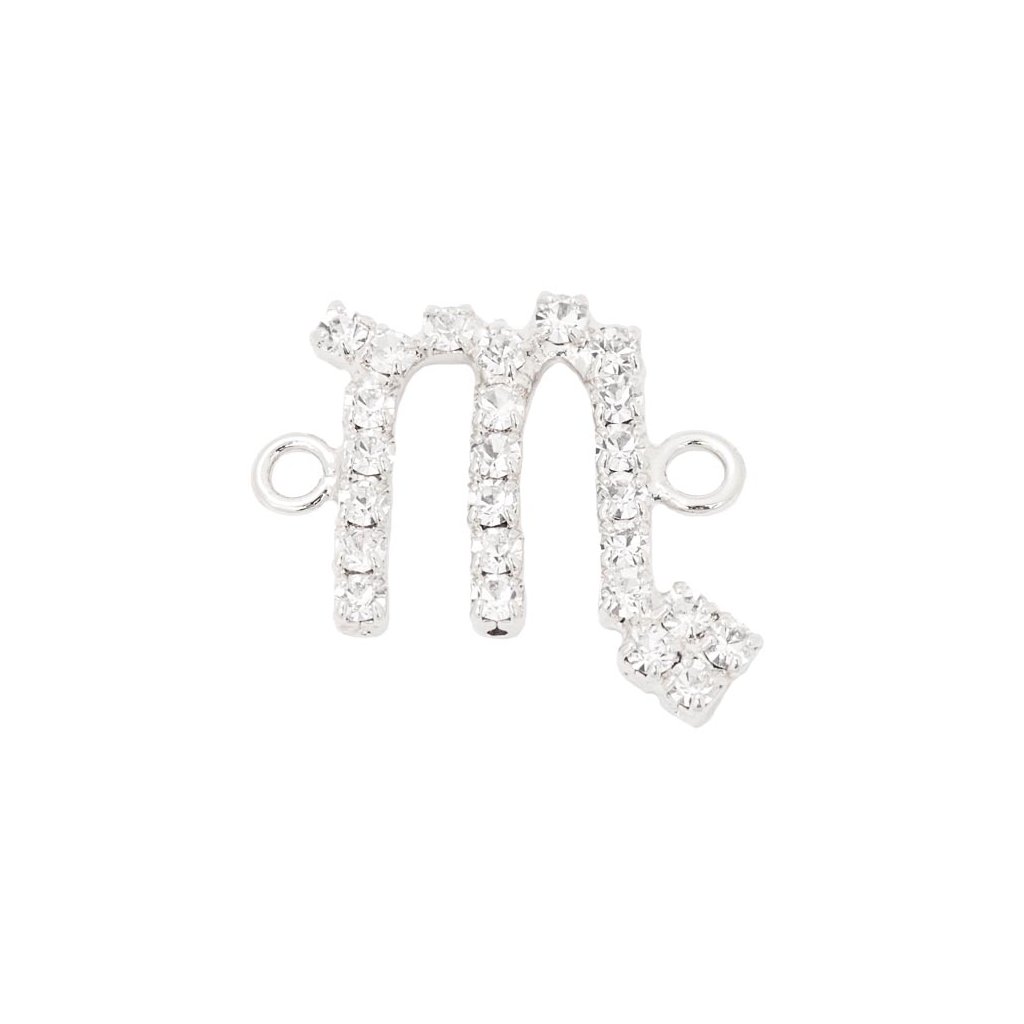 Mezidíl na náramek znamení zvěrokruhu Štír o rozměru 17/15mm v povrchové úpravě rhodium. V přívěsku jsou usazeny krystaly Preciosa.