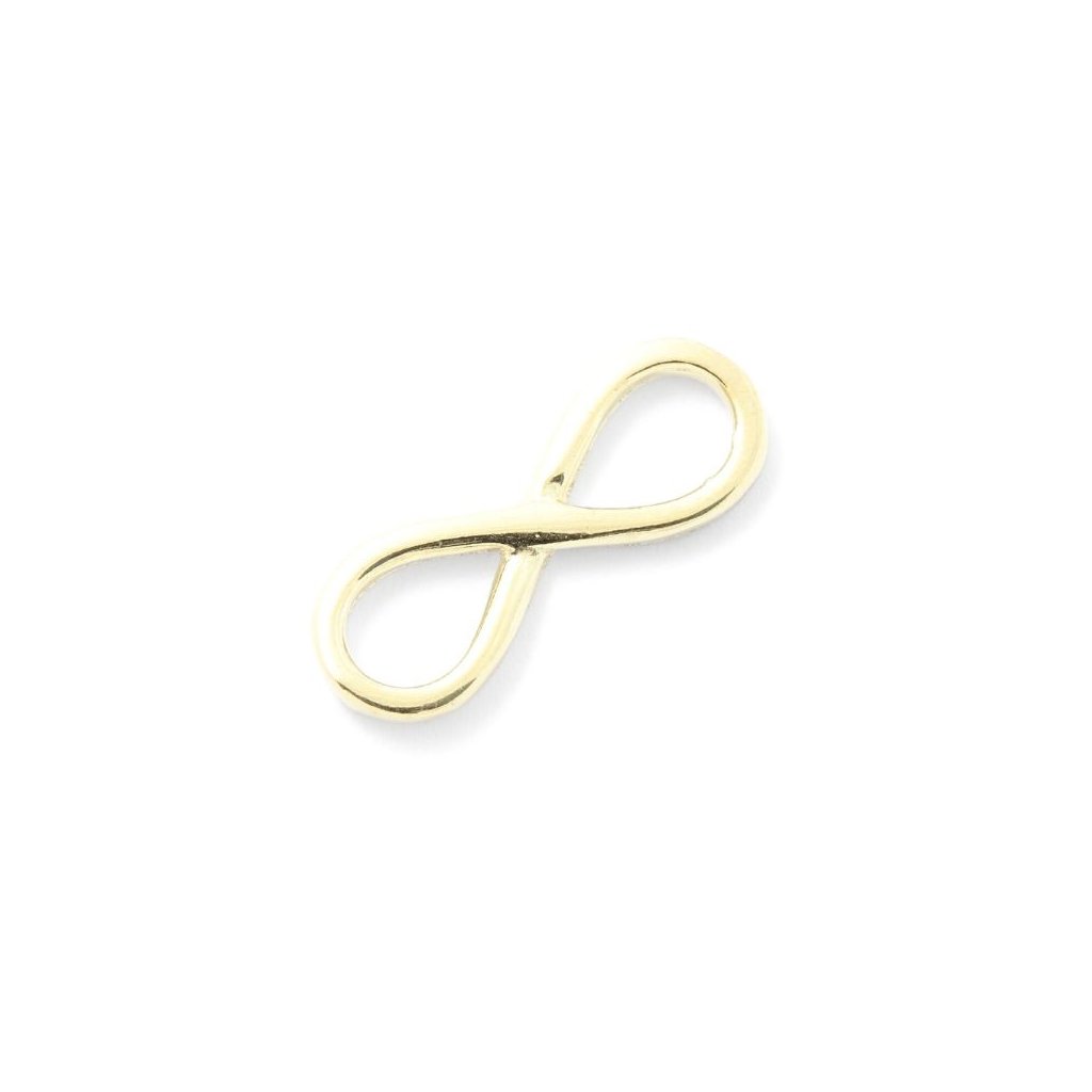 Mezidílek na náramek ve tvaru nekonečna o rozměru 17/6,5mm. Vyrobeno ze stříbra 925/1000 s povrchovou úpravou gold plating 24kt. Lze použít jako mezidílek i přívěsek.