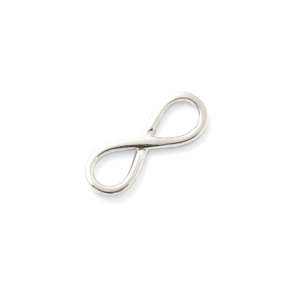 Mezidílek na náramek ve tvaru nekonečna o rozměru 17/6,5mm. Vyrobeno ze stříbra 925/1000 s povrchovou úpravou rhodium. Lze použít jako mezidílek i přívěsek.