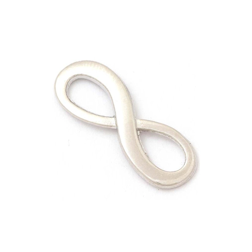 Mezidílek do náramků a jiných šperků ve tvaru nekonečna o rozměru 23/8mm a galvanické povrchové úpravě rhodium. Nekonečno je lehce prohnuté, aby kopírovalo lépe zápěstí.