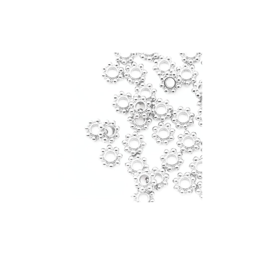 Rondelka o rozměru 5/1,5mm s povrchovou úpravou stříbro. Mezidílek můžete různě kombinovat a zdobit rozteče mezi korálky.