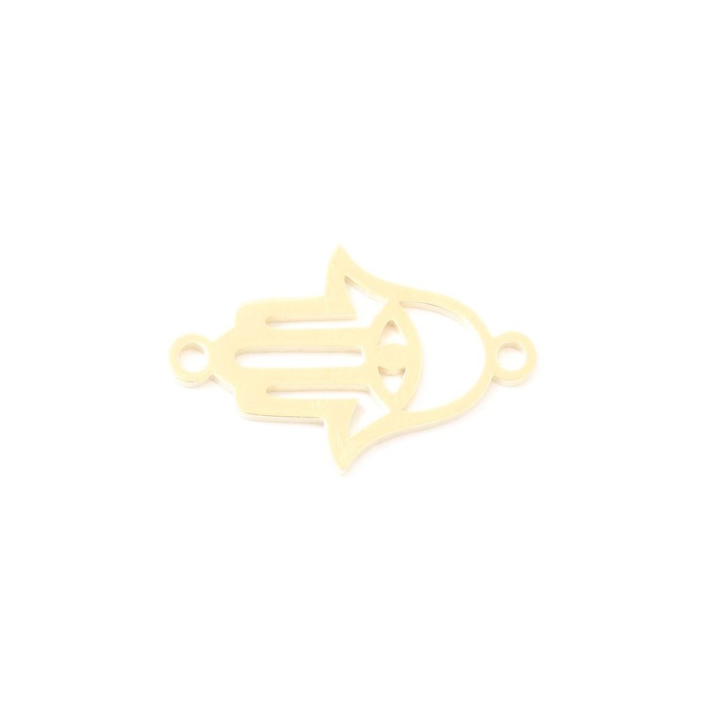 Mezidíl ve tvaru ruka Fatima o rozměru 20/12mm. Mezidílek je vyroben z chirurgické oceli s povrchovou úpravou gold plating 24kt. Je vhodný především jako mezidílek na náramky.