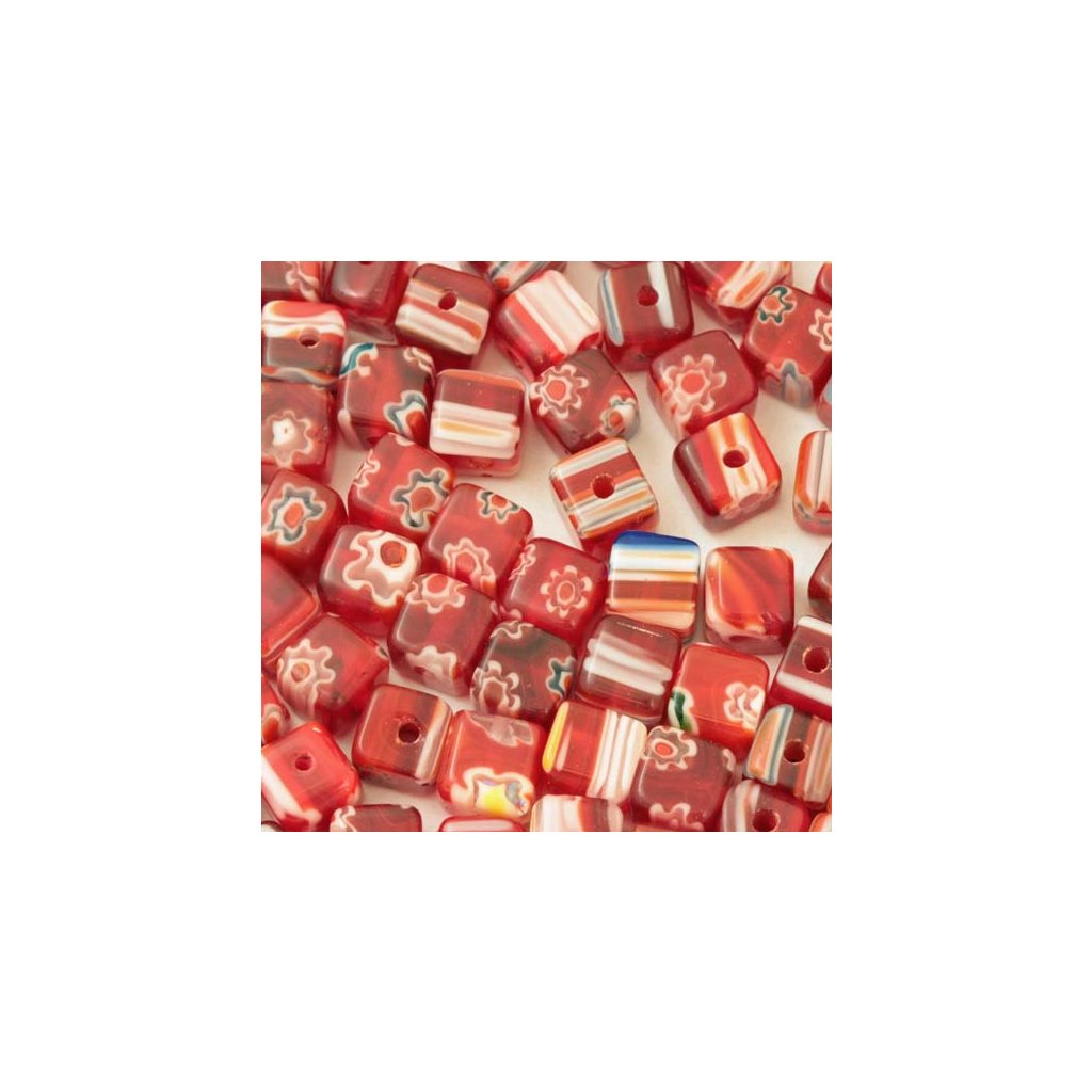 Korálek Millerfiori ve tvaru kostičky o rozměru 6mm a barevném provedení červená. Korálek je vhodný na všechny techniky korálkování.