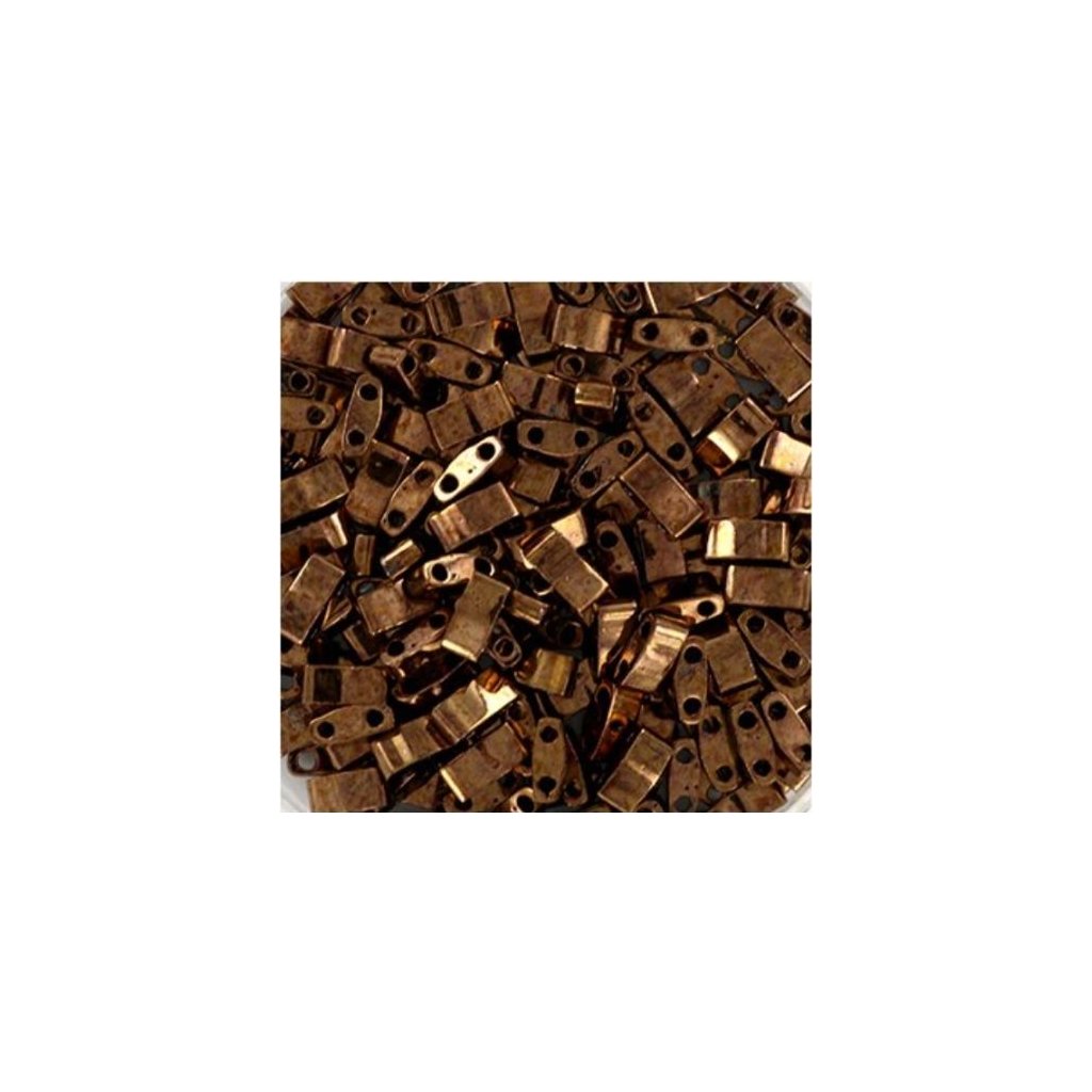 Poloviční Miyuki Tila korálky jsou obdélníkové korálky se 2 dírkami rovnoběžnými dírkami. Velikost je 2,5 x 5 mm, což je přesně polovina velikosti čtvercových korálků tila. S tloušťkou pouhých 2 mm jsou velmi ploché.