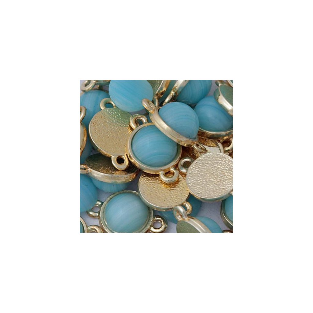 Mugle usazená v kovodílu s povrchovou úpravou zlato. Korálek má barevné provedení modré o rozměru 15mm. Balení obsahuje jeden kus.