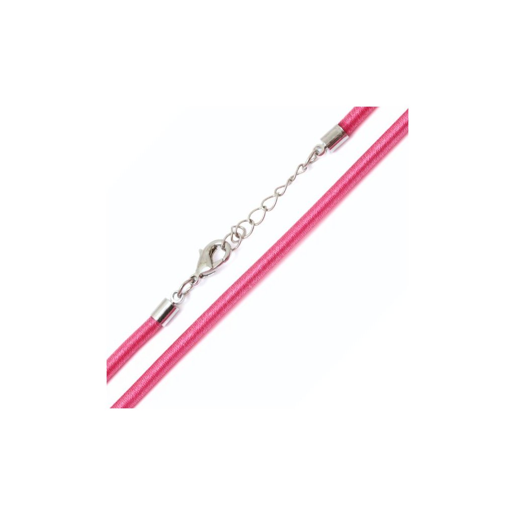 Náhrdelníkový polotovar z pevné šňůrky o síle 4mm a délce 45cm. Barevné provedení šňůrky je růžová. Náhradelník je včetně záponek, stačí tak jen zavěsit přívěsek.