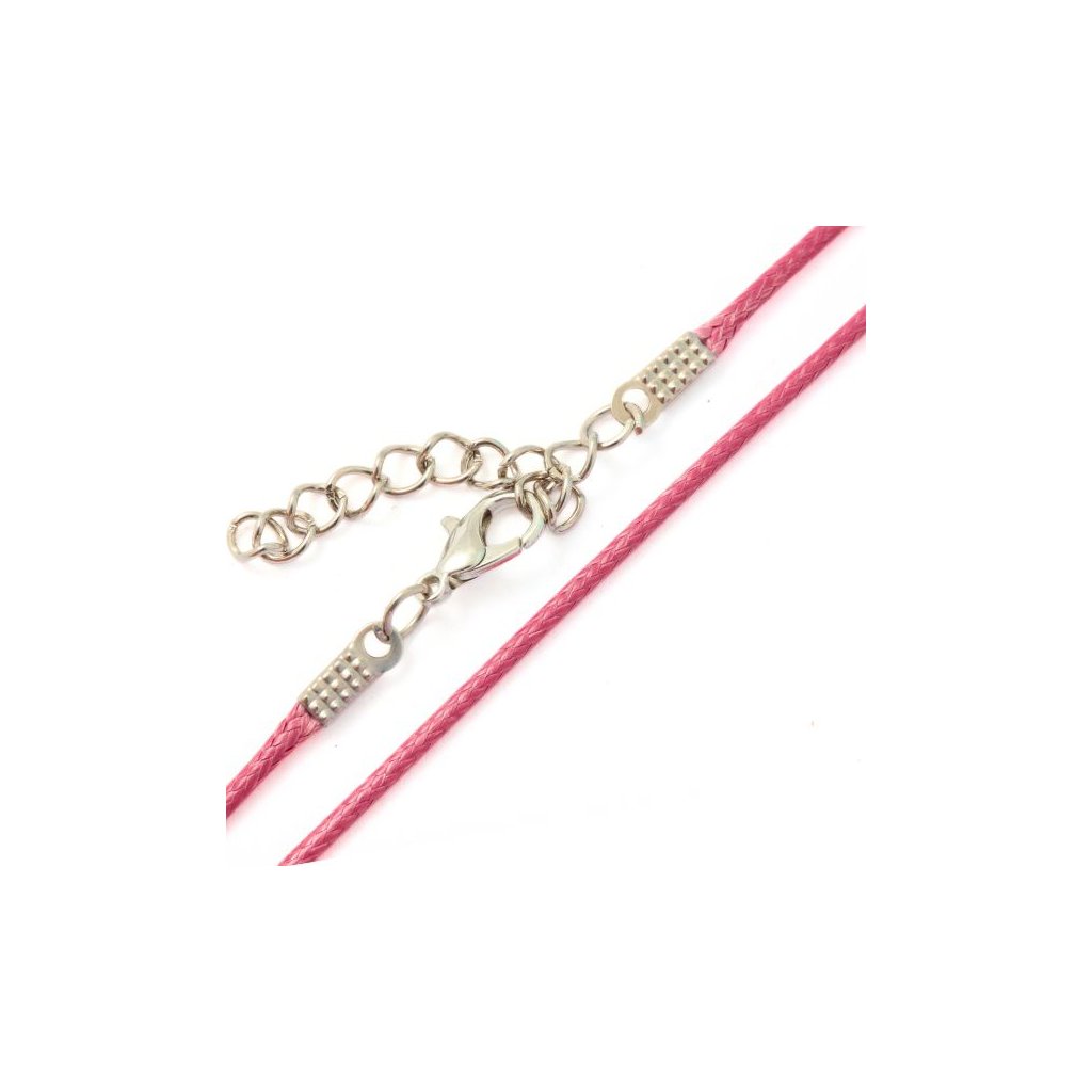 Náhrdelníkový komponent z voskované šňůrky o síle 1,5mm a délce 43cm a barevném provedení červená. Náhrdelník je včetě koncovek a karabinky a prodlužovacího řetízku, jedná se tak o kompletní náhradelník a stačí již jen vybrat nějaký přívěsek k zavěšení.