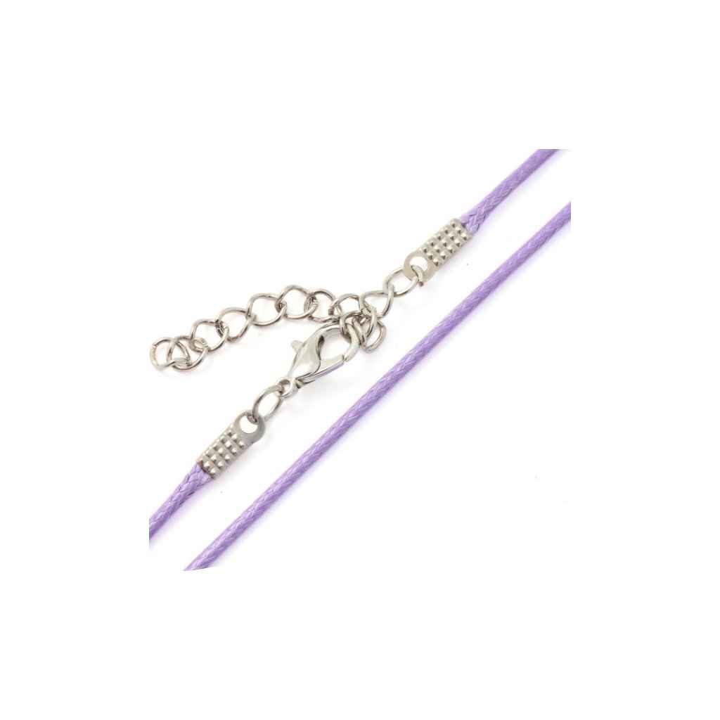 Náhrdelníkový komponent z voskované šňůrky o síle 1,5mm a délce 43cm a barevném provedení fialová. Náhrdelník je včetě koncovek a karabinky a prodlužovacího řetízku, jedná se tak o kompletní náhradelník a stačí již jen vybrat nějaký přívěsek k zavěšení.