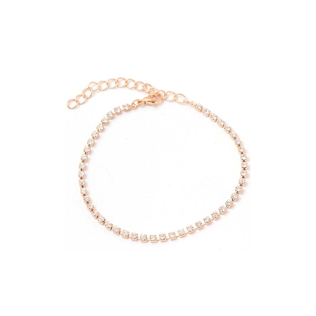 Náramek STRASS o síle 2mm, délce 17cm v povrchové úpravě rose gold. Řetízek má adjustační řetízek cca 5cm pro jeho prodloužení. Na náramek můžete kroužkem, ketlovací jehlou či jinak připevnit přívěsky, nebo nechat jen náramek takto decentní.