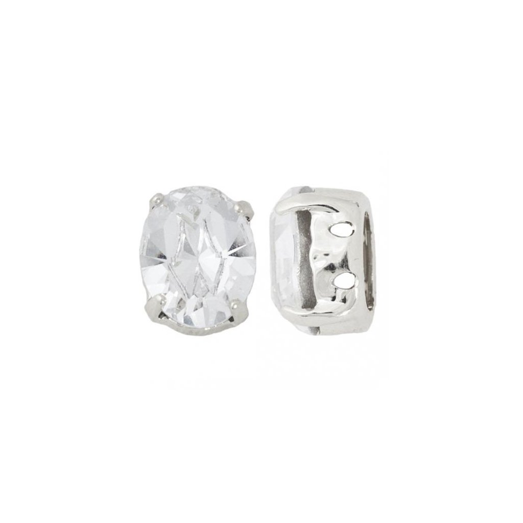 Našívací kotlík Rhodium/Swarovski® Crystals Oval 10x8mm Crystal