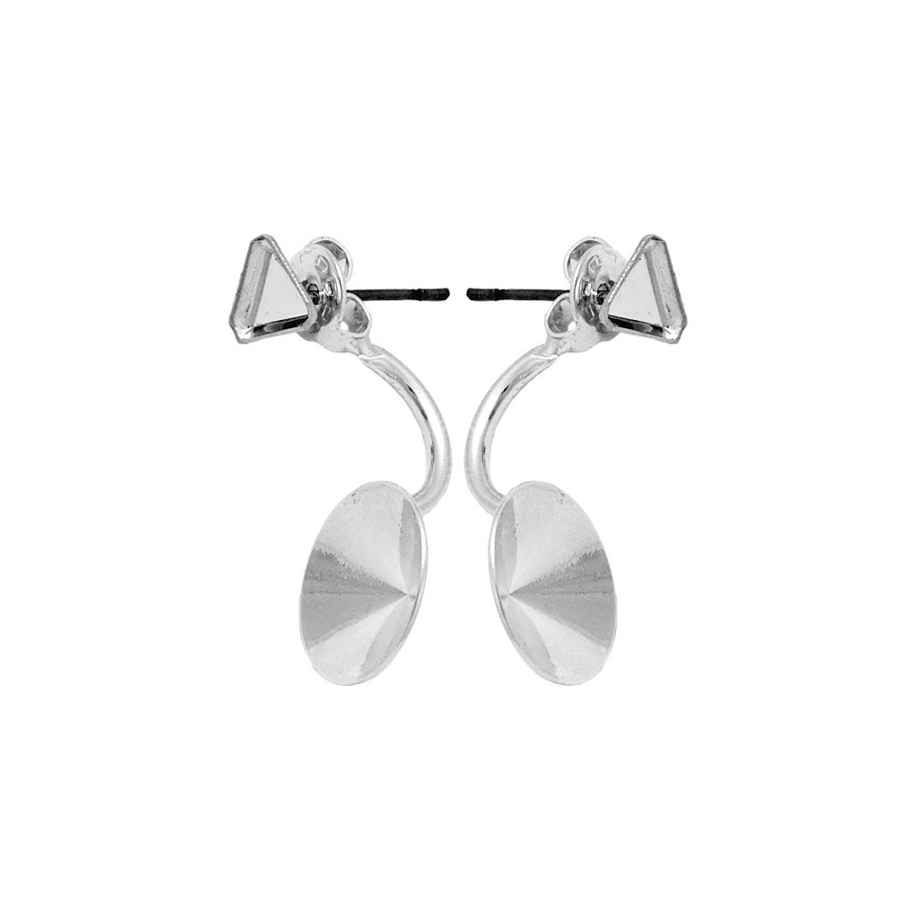 Náušnice na dříku Double, jsou určeny pro Swarovski Angled Cube 6mm. Motýlek náušnic je opratřen závěsem pro Rivolu 12mm, díky tomuto efektu je tak krystal s předního pohledu pod uchem. Náušnice mají velmi kvalitní galvanizaci Rhodium. Uvedená cena je za jeden pár.