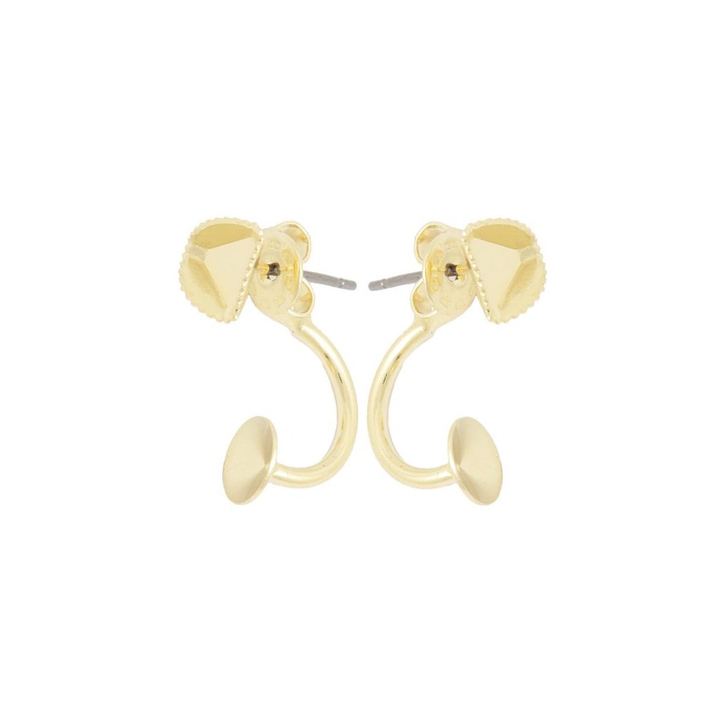 Náušnice na dříku Double, jsou určeny pro Swarovski Angled Cube 6mm. Motýlek náušnic je opratřen závěsem pro Rivolu 6mm, díky tomuto efektu je tak krystal s předního pohledu pod uchem. Náušnice mají velmi kvalitní galvanizaci Gold Plating 24kt. Uvedená cena je za jeden pár.
