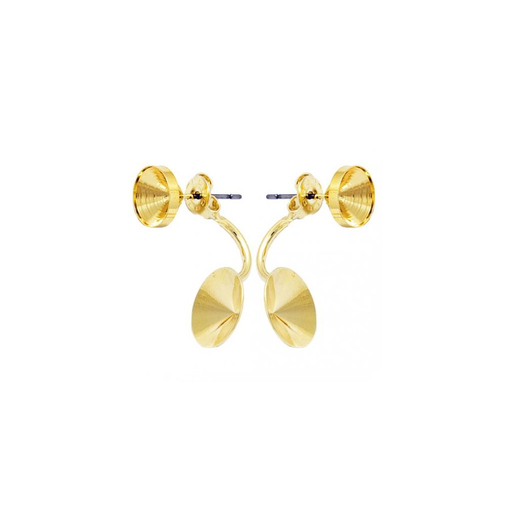 Náušnice na dříku Double, jsou určeny pro Swarovski či Preciosa Chaton 8mm. Motýlek náušnic je opratřen závěsem pro Rivolu 12mm, díky tomuto efektu je tak krystal s předního pohledu pod uchem. Náušnice mají velmi kvalitní galvanizaci Gold Plating 24kt. Uvedená cena je za jeden pár.