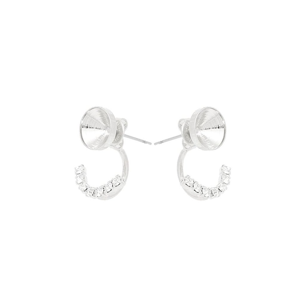 Náušnice na dříku Double, jsou určeny pro Swarovski či Preciosa Chaton 8mm. Motýlek náušnic je opratřen závěsem se strassem Swarovski, díky tomuto efektu je tak strass s předního pohledu pod uchem. Náušnice mají velmi kvalitní galvanizaci Rhodium. Uvedená cena je za jeden pár.