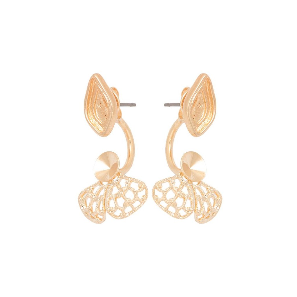 Náušnice DOUBLE flame 10mm/filigrán rivoli 6mm rose gold