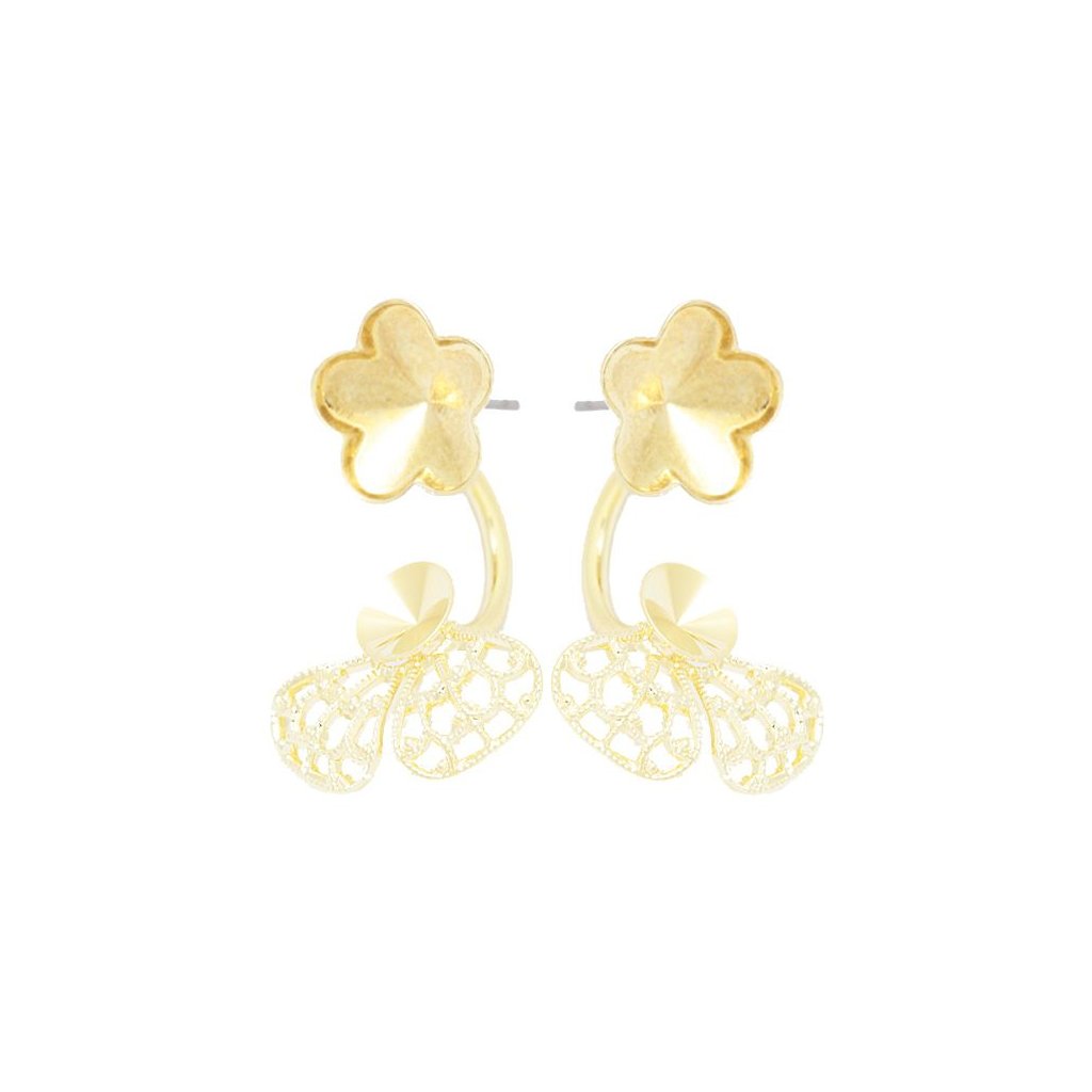 Náušnice na dříku Double, jsou určeny pro Swarovski Flower 10mm. Motýlek náušnic je opratřen závěsem s filigránem pro Swarovski Rivoli 6mm, díky tomuto efektu je tak rivolka s předního pohledu pod uchem. Náušnice mají velmi kvalitní galvanizaci Gold Plating 24kt. Uvedená cena je za jeden pár.